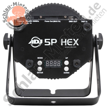 Die professionellen Eigenschaften der 5P HEX umfassen: 4 DMX-Modi (6-, 7-, 8- und 12-Kanal), 5 Betriebsmodi, 5 Dimmerkurven, flimmerfreier Betrieb und eine digitale DMX-Anzeige mit 4-Tasten-Menü.